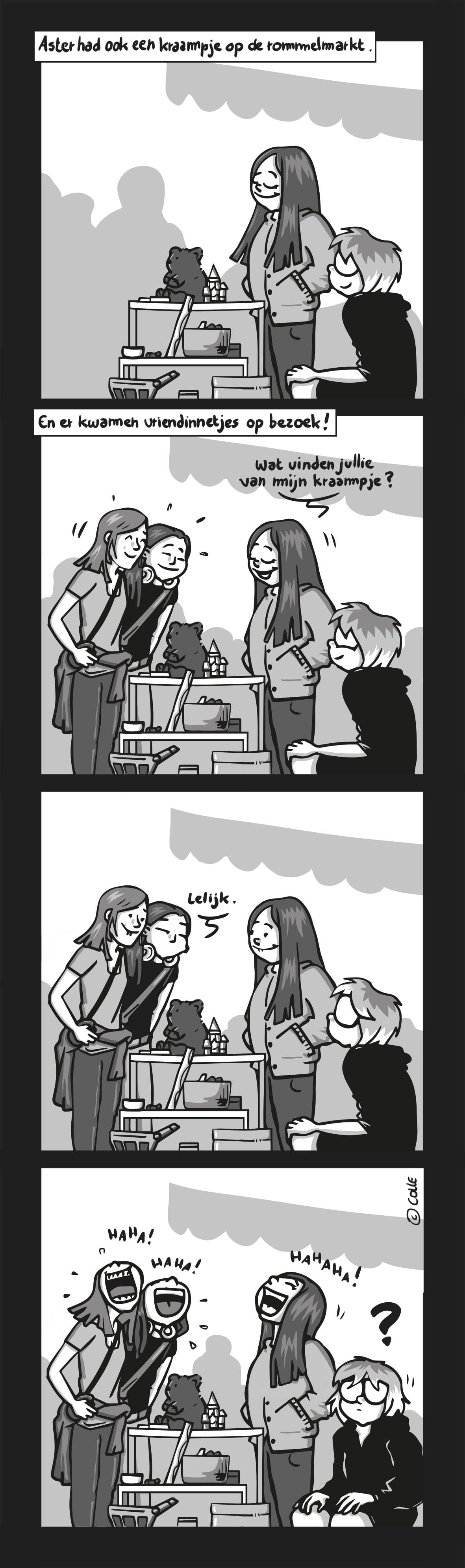 Aster krijgt bezoek op de rommelmarkt.